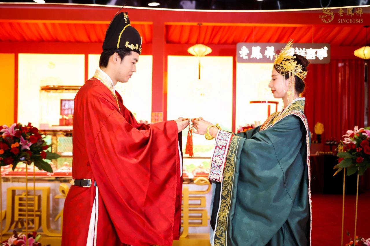 現(xiàn)場的模特們生動演繹“鳳祥喜事”國風(fēng)大秀,用一場唯美的國風(fēng)婚禮展示中國傳統(tǒng)的婚嫁禮儀和東方婚嫁美學(xué),巧妙地融合了老鳳祥的珠寶元素,讓觀眾再度領(lǐng)略國潮首飾的魅力。