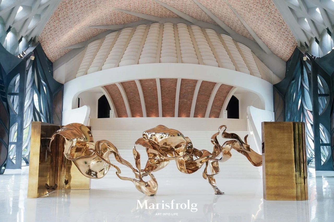 在建筑內的美術館中,瑪絲菲爾聯(lián)合全球20多位藝術家共同呈現(xiàn)了“萬相琉璃”藝術工坊展,顧客在六個展區(qū)內感受到琉璃藏品及藝術冬裝的優(yōu)雅結合,把女性的柔韌和琉璃工藝通過藝術的表達完美融合。