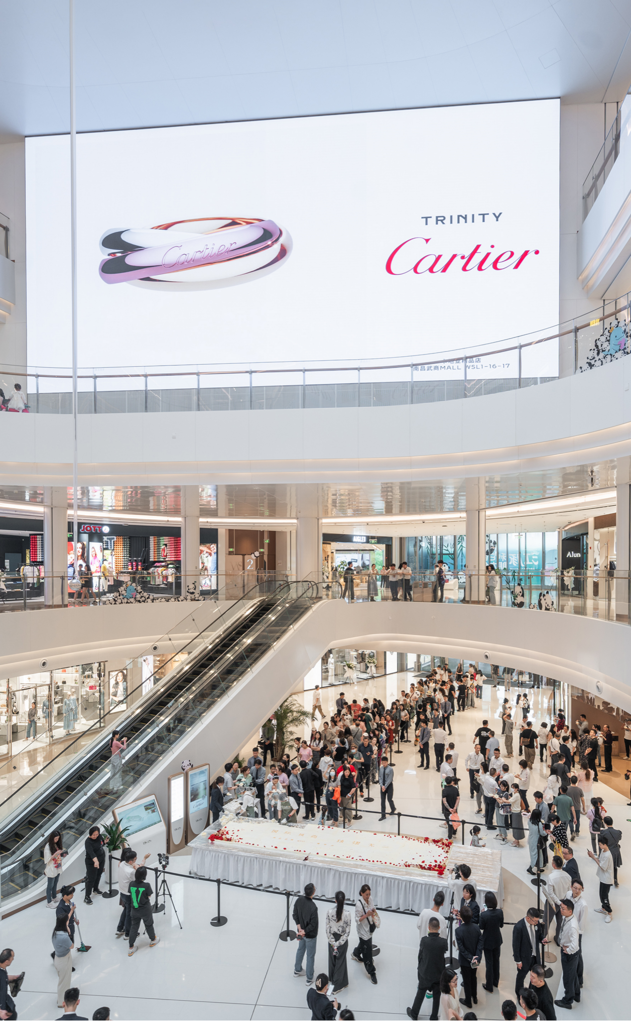 場(chǎng)內(nèi)還設(shè)有多塊電子大屏,輪播大牌廣告,為品牌商家提供即時(shí)傳播平臺(tái),增強(qiáng)高奢氛圍和互動(dòng)感,配合大階梯,可隨時(shí)化身“秀場(chǎng)”,呈現(xiàn)發(fā)布會(huì)、時(shí)裝秀、美陳展等各類活動(dòng),煥發(fā)空間活力。