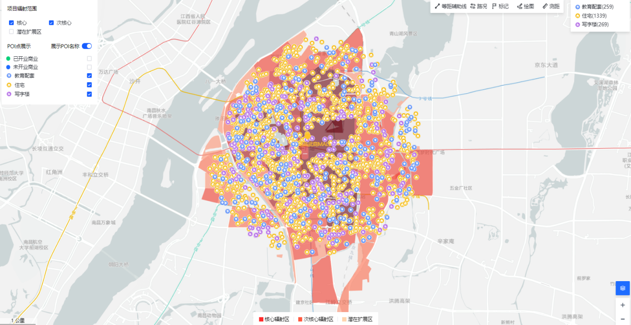 南昌武商MALL核心及次核心輻射區(qū)