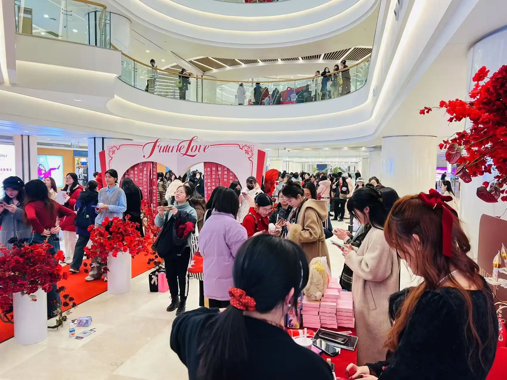 本次活動(dòng)是武商MALL與乙游IP的再度攜手,相較首次合作,此番在展點(diǎn)策劃、互動(dòng)形式和宣傳范圍等方面均進(jìn)行了優(yōu)化升級(jí)。多點(diǎn)位投放電子屏,特別是C座瀑布屏、冰場(chǎng)環(huán)形屏的曝光,極大滿足粉絲打卡分享欲。多樓層設(shè)置打卡點(diǎn),通過集章方式將客流引至全館,每個(gè)打卡點(diǎn)根據(jù)故事場(chǎng)景進(jìn)行轉(zhuǎn)換,精美陳列帶來沉浸浪漫氛圍,更是與乙游角色“秦徹”的深度綁定,形成強(qiáng)代入感。同時(shí),打卡點(diǎn)位的分散設(shè)置,不僅緩解了粉絲長時(shí)間排隊(duì),增加活動(dòng)參與率,還聯(lián)動(dòng)樓層品牌開展會(huì)員納新,增加曝光度?;顒?dòng)檔期相關(guān)話題瀏覽量增長近10萬,在社交平臺(tái)引發(fā)熱烈討論。