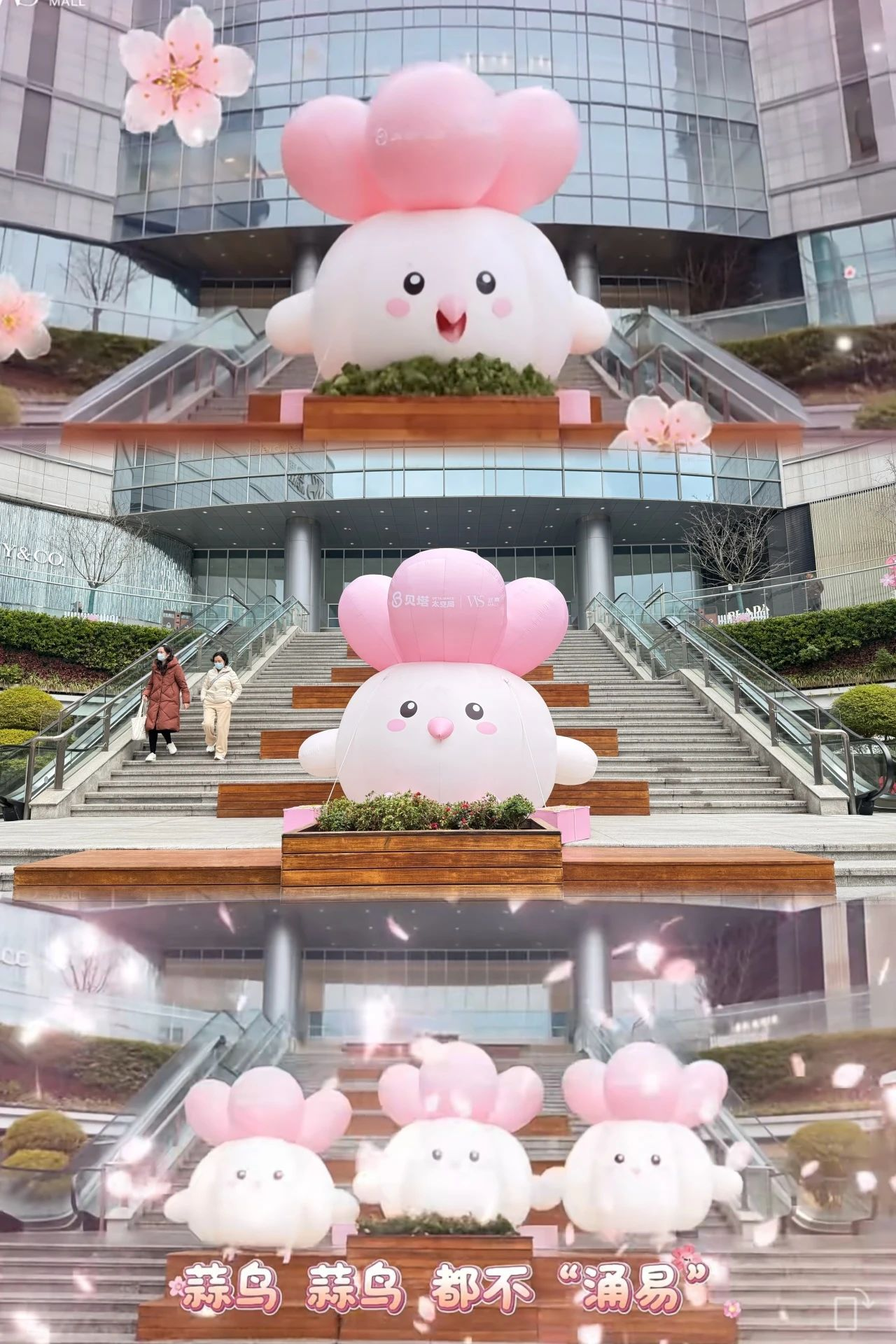 武商MALL還將櫻花季文旅元素與年輕人的情緒消費(fèi)巧妙融合,引入火爆全網(wǎng)的“蒜鳥”鄂人文創(chuàng)玩偶,通過(guò)自營(yíng)售賣、營(yíng)銷換購(gòu)以及線上預(yù)售、抽獎(jiǎng)等方式引流增粉,吸引了北京、深圳、海南等地粉絲熱購(gòu)。同時(shí),武商MALL將玩偶帶進(jìn)漢馬體育消費(fèi)展,并攜手品牌方在中心廣場(chǎng)打造巨型限定版櫻花蒜鳥氣模,吸引大量顧客打卡。公司企劃團(tuán)隊(duì)利用AI技術(shù)制作蒜鳥賞櫻的萌趣視頻,掀起宣傳熱潮,自營(yíng)售賣的玩偶達(dá)千余個(gè),收獲了口碑和效益的雙增長(zhǎng)。